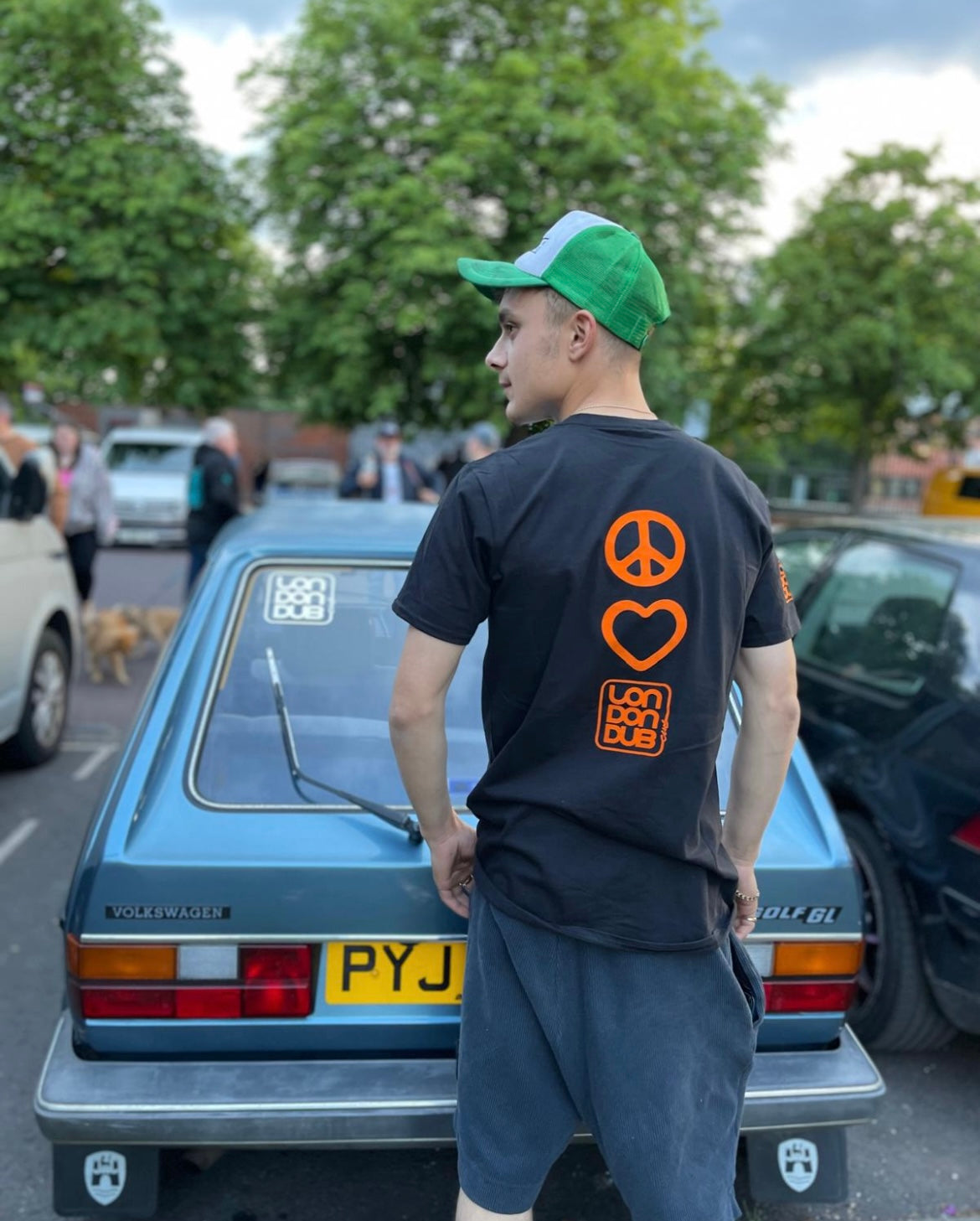 Londondubclub Black T-shirt with orange flock